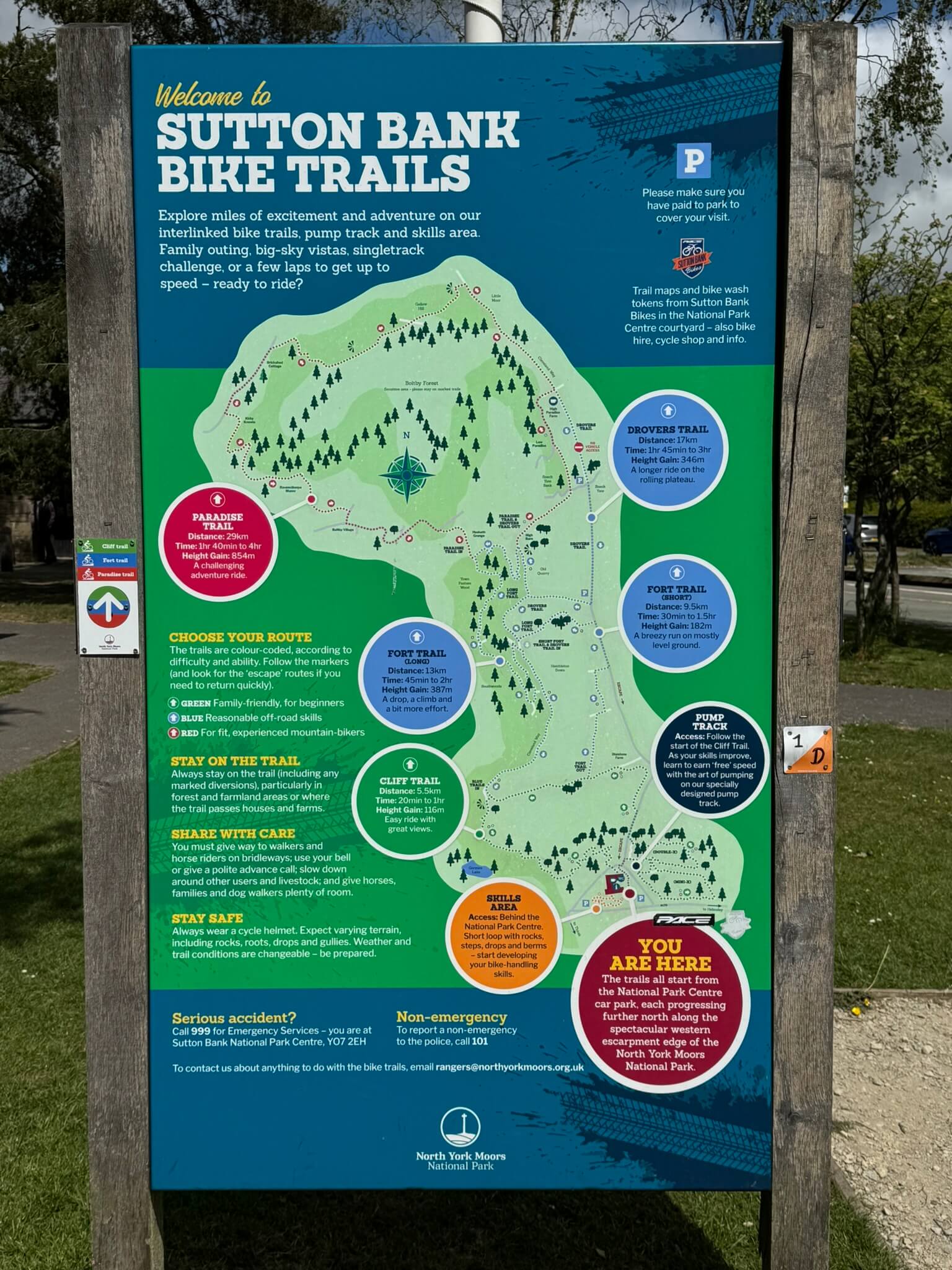 Another excellent destination is Sutton Bank, featuring two purpose-built all-weather cycling tracks. The pump track offers the thrill of riding a loop of banked turns and rollers. Meanwhile, there are four cycle trails, ranging from “Cliff,” a 3-mile family-friendly circular, to “Paradise,” a 17.5-mile red route for experienced riders. The family cycle trail, a 2.5km figure-of-eight, provides a longer and wider start to the existing Cliff Trail enabling families to ride side-by-side through woodland, as well as providing better access for those using adapted cycles such as handcycles. This trail also doubles as a cyclocross track for competitive events during autumn and winter. Like Dalby Forest, Sutton Bank also provides a dedicated bike skills area and bike wash facilities.